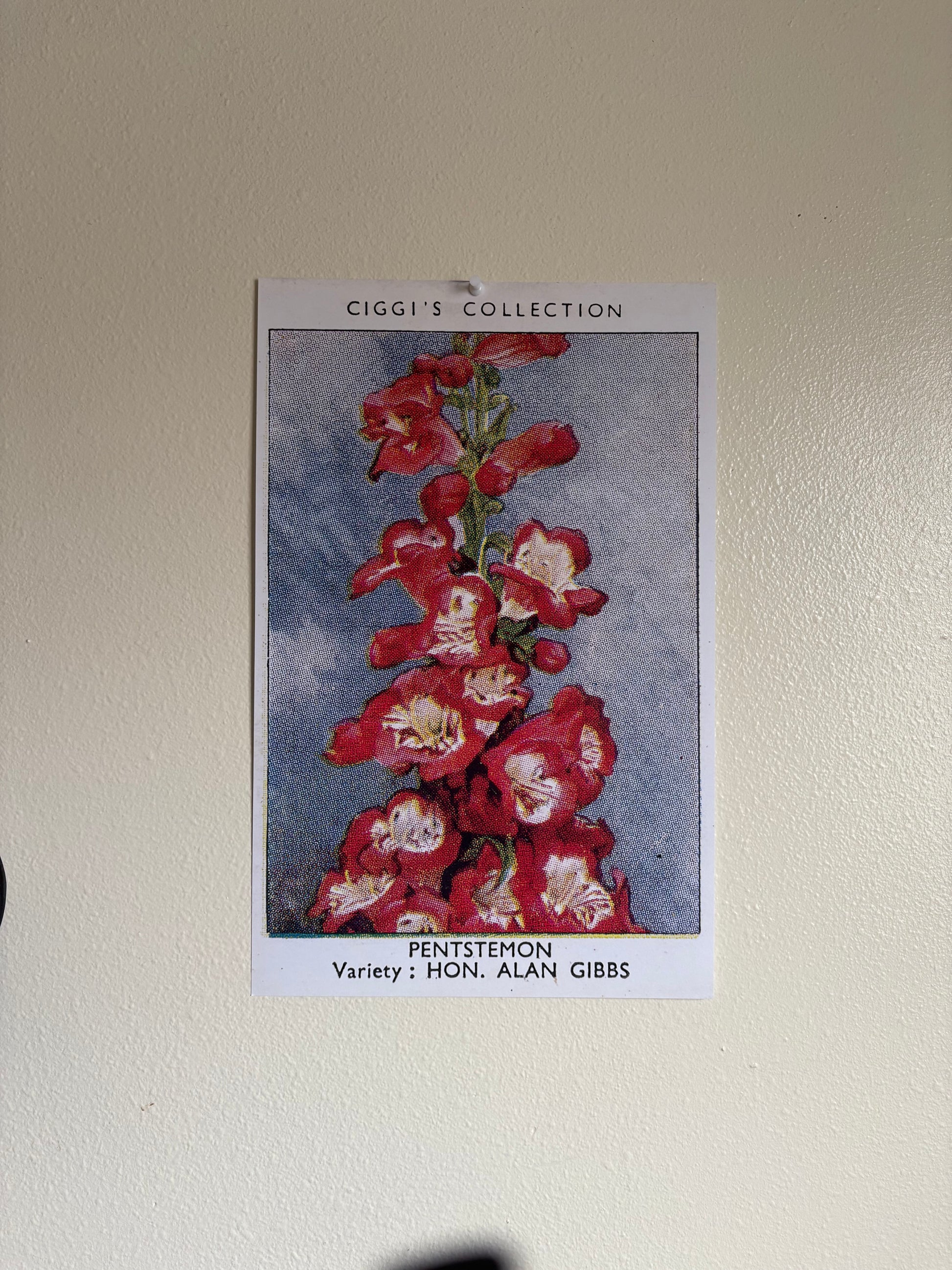 This vibrant penstemon (beardtongue) flower was originally featured on a cigarette card from the 1930s and has been carefully reproduced to bring vintage garden color to your space.