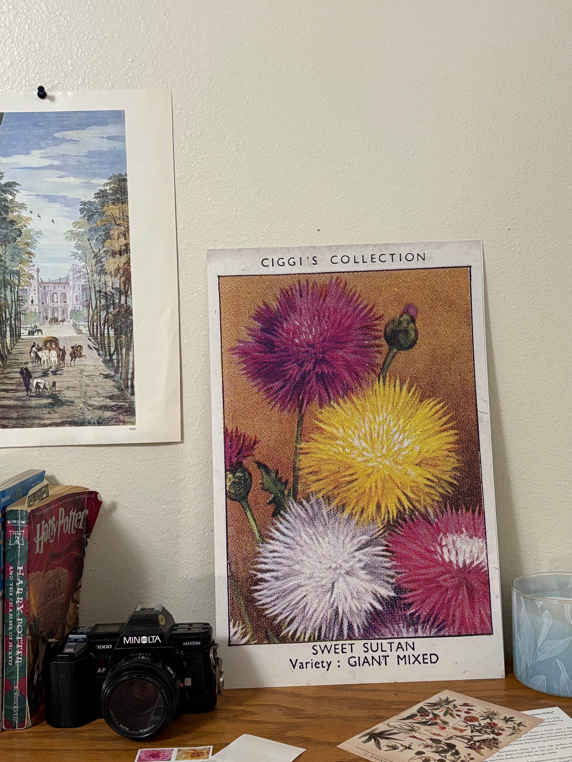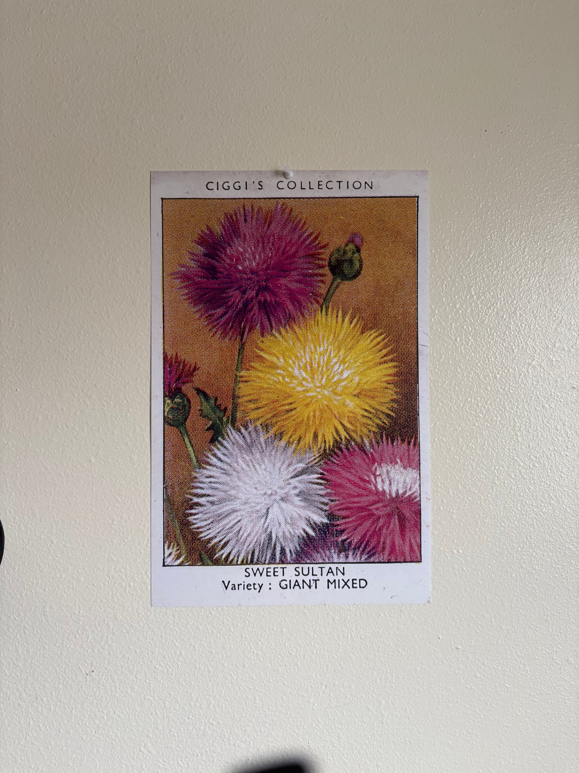 This enchanting sweet sultan flower was originally featured on a cigarette card from the 1930s and has been carefully reproduced to bring vintage garden romance to your space.