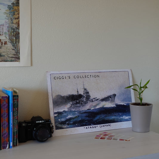 Vintage Atago Battleship Print | 1930's Cigarette Card